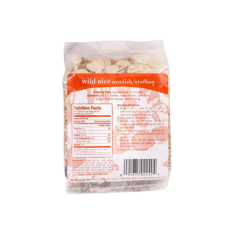 Hotdish is Minnesota-speak for casserole. Everything you need in one package - Cultivated wild rice, almonds, apricots, mushrooms, celery, onions, bulgur wheat, and seasonings. A family recipe for years, it will become a favorite of yours, too. Try it as a side dish for your next Thanksgiving feast.